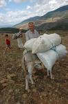 Famille d'agriculteurs rentrant d'un ramassage de maïs