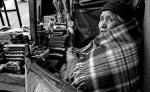 Anciana indigena vendiendo en su puesto callejero.